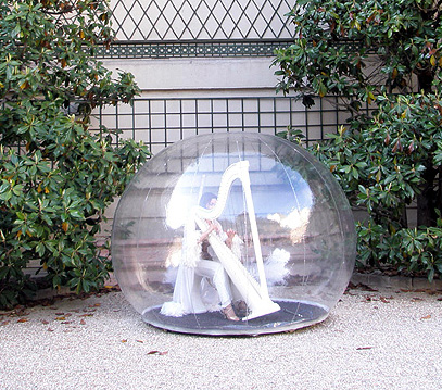Mai 2009 - Sabine's performing in a see-through plastic bubble with her white harpon the occasion of a cocktail-reception at the magnificent Musée André-Jaquemart.